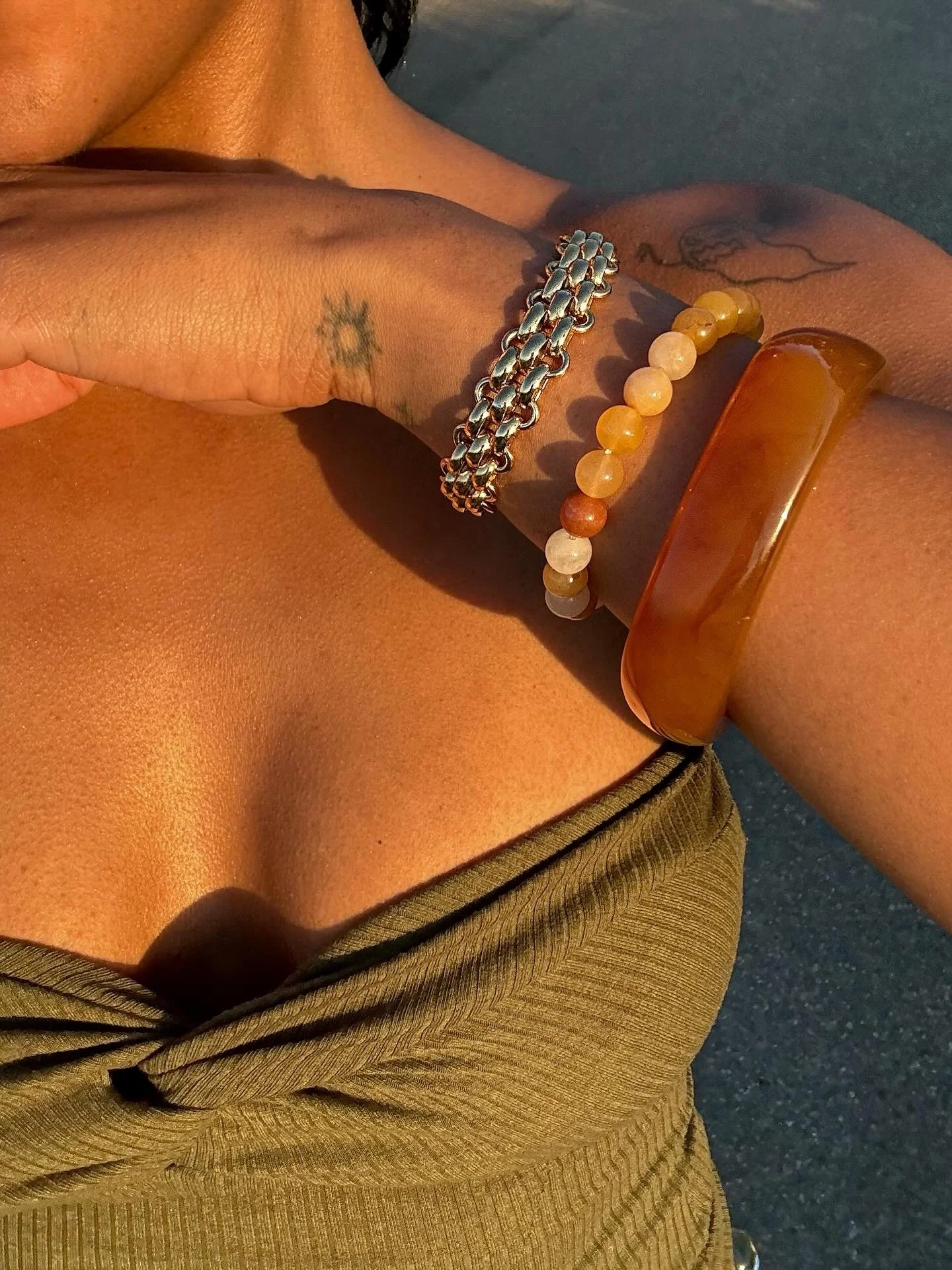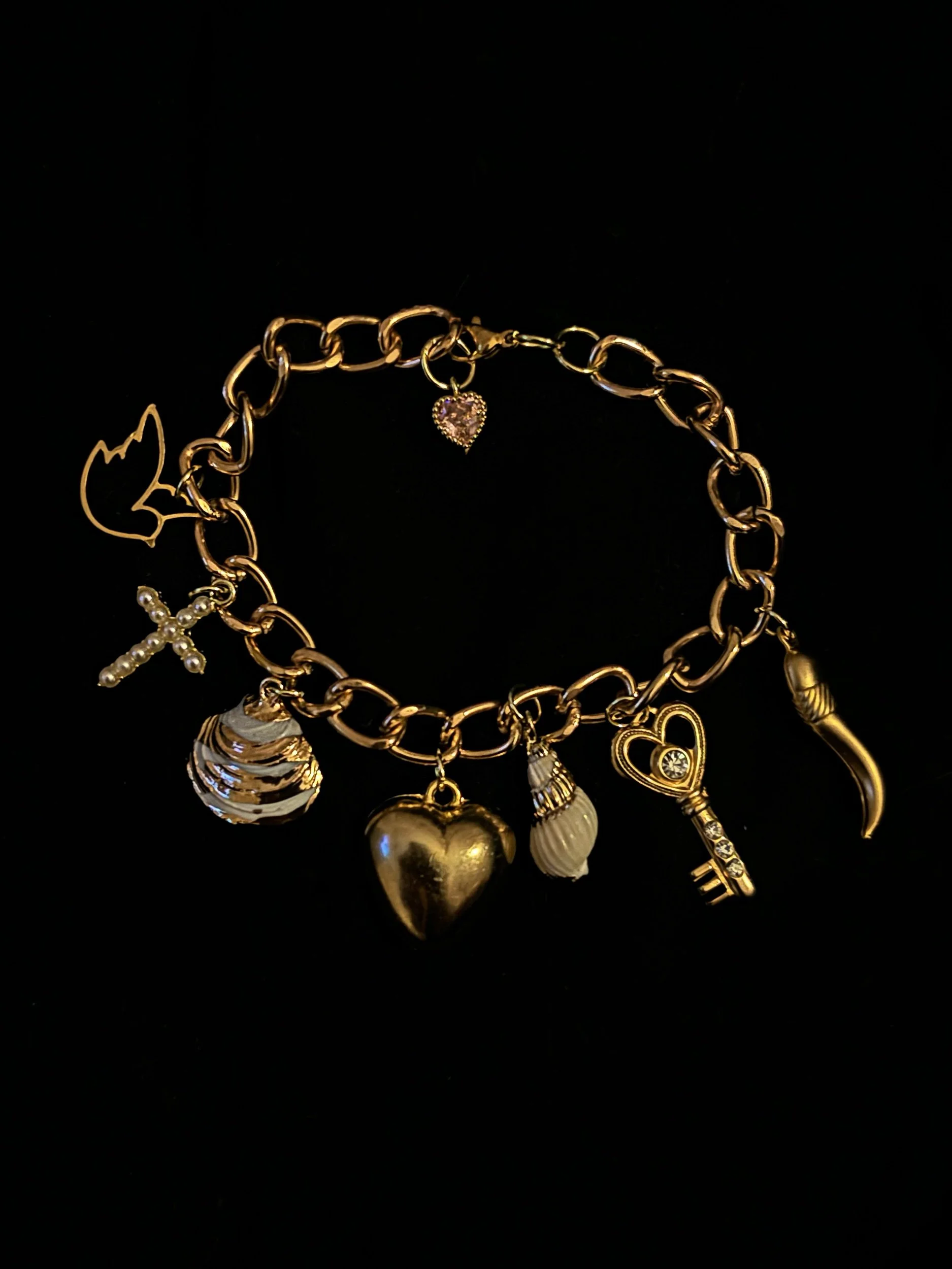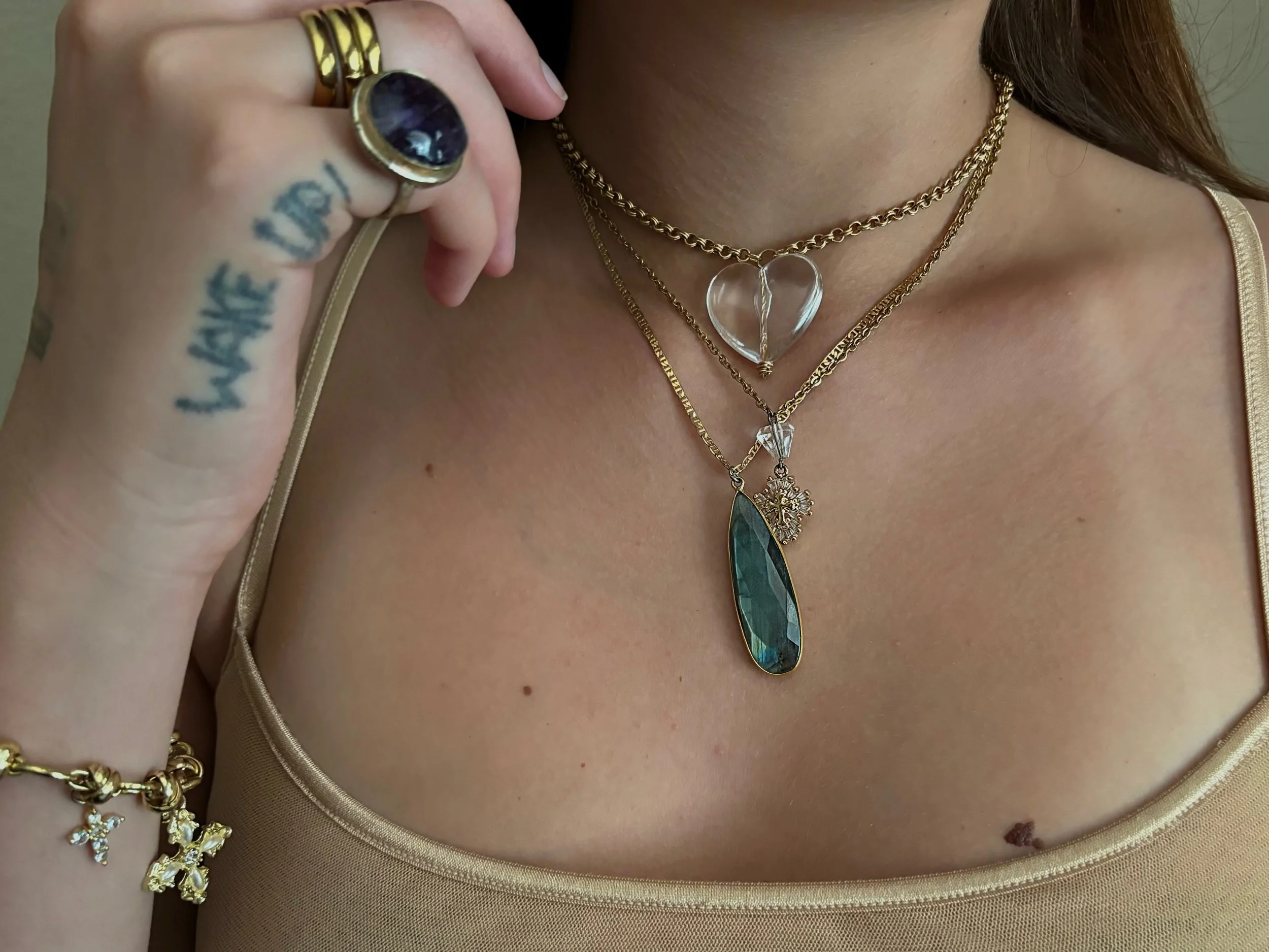 The amulet belt $40.00 Gold Link bracelet $30.00 Sold out Lucky lady charm bracelet $30.00 Enchanted chain $40.00 Oceano necklace $30.00 Hope rosary bracelet $30.00 Sold out La Bella chain $25.00 Bloom waist chain $50.00 Sold out Starry chain $40.00 Mother’s amulet $25.00 Sold out Mother of pearl charm necklace $50.00 Sold out Silver Virgin Mary locket $25.00 Sacred heart locket $25.00 Silver virgencita necklace $35.00 Holy Mother Rosary $25.00 Sold out